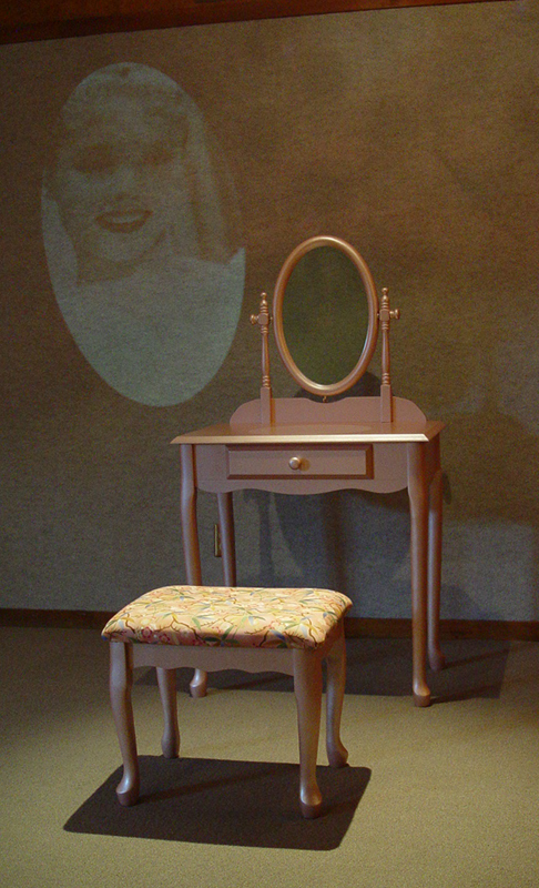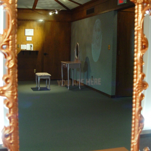 Mirror, Mirror includes found objects, video, and sound that addresses issues commonly faced by women regarding body image and perceptions of societal roles in our modern culture.